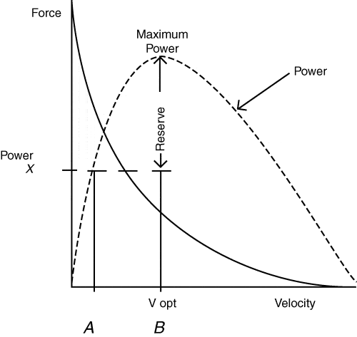 Figure 2 Relationship between force-velocity, force-power and optimal load