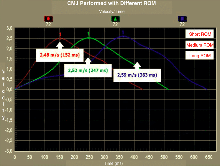Moreover, It has been shown that training not only influences peak performance variables but also elicits changes in the shape of the power-, force-, velocity-, and displacement-time curves throughout the entire movement 15,17. Additionally, those changes may not be entirely due to physiological adaptations (i.e., increased muscle activation) but also, mechanical changes in technique can be a contributing factor to the improvements in peak performance variables (i.e., increased depth of countermovement may result in the optimization of stretch-shorten cycle mechanics and lead to improved CMJ performance)17,18.