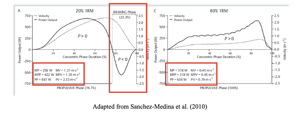 Once we have understood the acceleration phase, deceleration phase, propulsive phase, and braking phase, we can examine how these phases affect a concentric action under different loads.