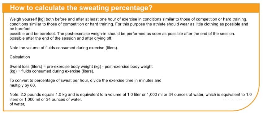 The image extracted from the file of Burke and Maughan (2007) (4) perfectly explains how to calculate fluid loss during physical activity