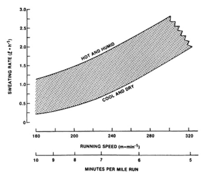 Graphical representation of sweat produced by runners. The images of Sawka and Pandolf (1990) are from the research of B. Baker, Lindsay. Jeukendrup, Asker. (2014).). Optimal composition of Fluid-replacement beverages.