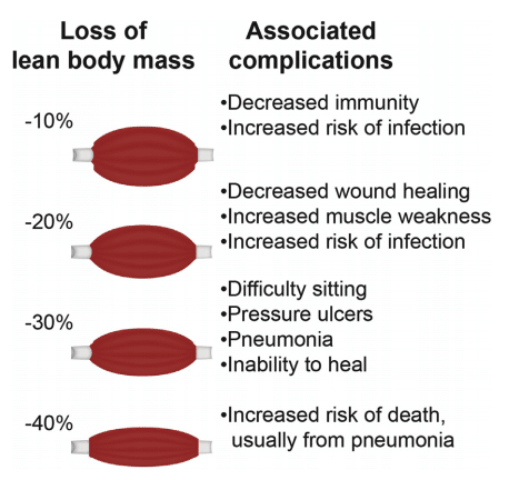Figura 8 Complicaciones de la pérdida de masa corporal magra (músculo)87.
