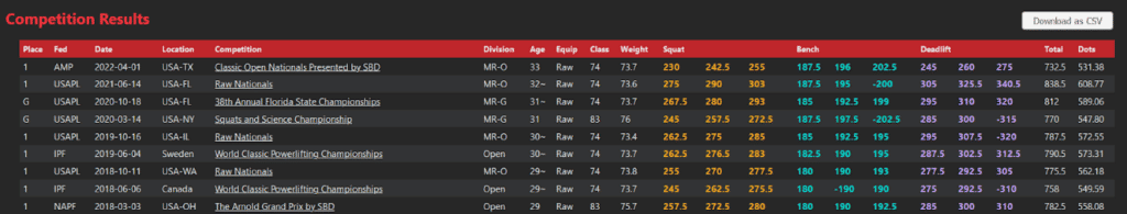 8. Web Open Powerlifting: https://www.openpowerlifting.org/u/tayloratwood