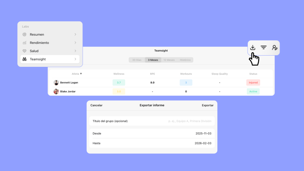 Ahora puedes exportar vistas de TeamSight como PDF, para compartir insights con el staff, atletas y dirección.