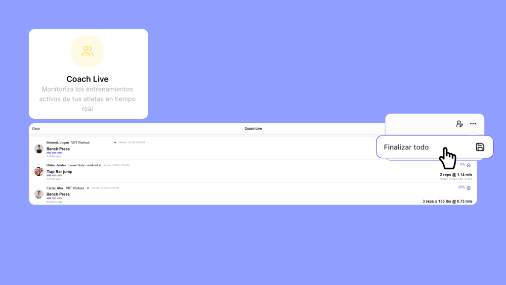 2) Nueva opción “Finalizar todo” en Coach Live