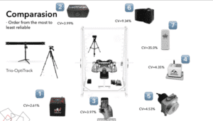 Une association parfaite a été observée entre Trio-optiTrack et les différents dispositifs. Gamme du coefficient de corrélation du produit-moment de Pearson (r) = 0,947-0,995; P <0,001) Avec l’exception du capteur Beast (r = 0 , 765; P <0,001).