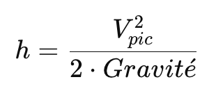 Par exemple, si un athlète atteint une vitesse de pic de 1,4 m/s à la fin de la phase propulsive, on peut calculer la hauteur du saut ainsi: