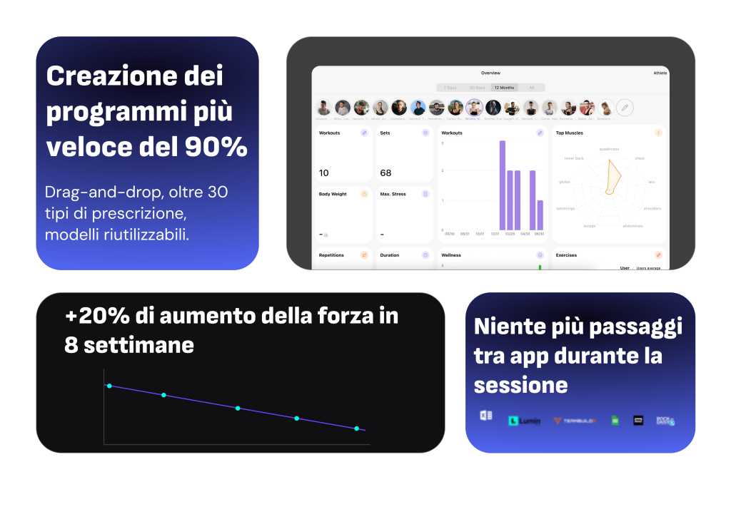 Crea programmi più velocemente, segui le prestazioni degli atleti in modo automatico e ottieni gli insights necessari per prendere migliori decisioni di coaching.